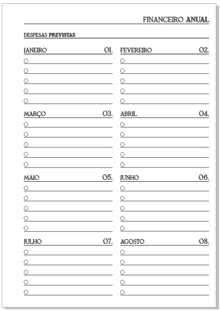 - Planejamento financeiro anual / Despesas previstas